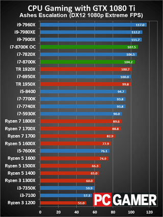 What exactly do you get from two additional cores and four more threads? You get something that looks a lot like one of the Intel's previous 6C12T 'enthusiast' CPUs, only with lower power requirements and a lower entry price. If you already have an i7-5820K, i7-5930K, i7-6800K, or i7-6850K, you're most of the way there, just without a few of the enhanced architecture aspects like AVX512 and a 6-wide superscalar design. Since we're PC Gamer, and this isn't some insanely expensive CPU that's primarily intended for professionals, I'm going to kick off the performance results with gaming this time.