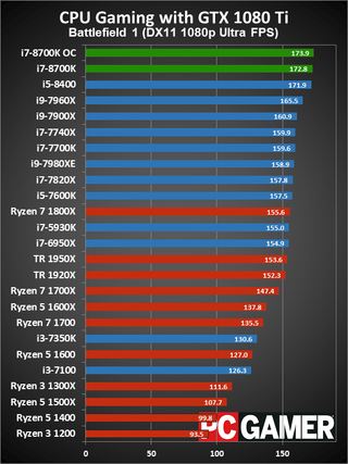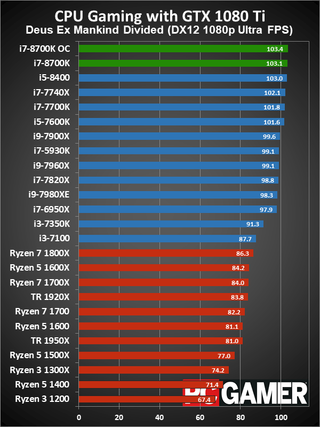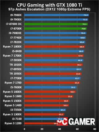 Coffee Lake is on the other side of the performance scale compared to the insane 18C36T Core i9-7980XE. It has one-third as many cores, yes, but it also uses about one-third the power, and it costs less than one-fifth as much. While the fastest Skylake-X parts excel at CPU-intensive tasks including video editing, software compilation, 3D modeling, and various professional applications, the i7-8700K is no slouch in those areas, and it takes top honors in our gaming suite. Of the 15 games tested, it ranks first in all but two games, and even when it loses it's not too far behind.